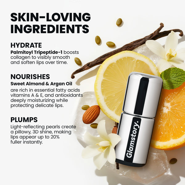 - ✔ Palmitoyl Tripeptide-1 — A signal peptide that boosts collagen synthesis, supporting natural lip repair and renewal. Unlike traditional peptides, the palmitoyl-bound form penetrates deeply to enhance long-term lip fullness and smoothness while delivering an instant moisturizing effect.